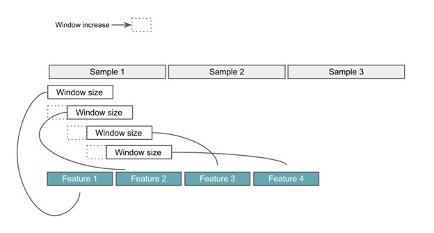 • Window Increase: The window increase is used to artificially create more features and feed the learning block with more information.