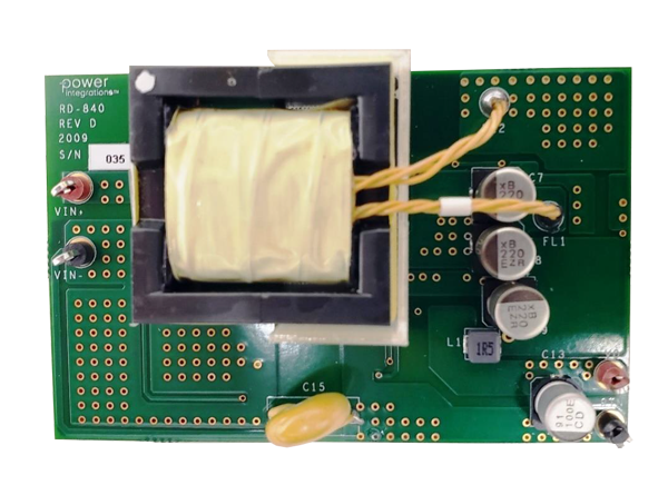 Power Integrations RDK-840Q Evaluation Board is designed to evaluate the INN3977CQ InnoSwitch™3-AQ switch. This evaluation board operates at 30VDC to 550VDC input voltage range, 50mW power with no load, 85% efficiency, and 30W output power. The RDK-840Q evaluation board is used in applications such as battery management systems, climate control and auxiliary converters, main DC-DC converters, onboard chargers, and traction inverters.Features