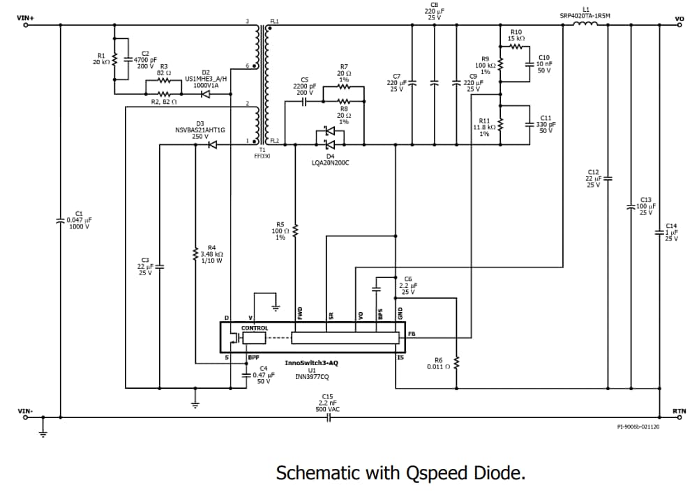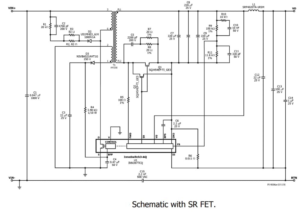 - Evaluates the INN3977CQ InnoSwitch3-AQ switch